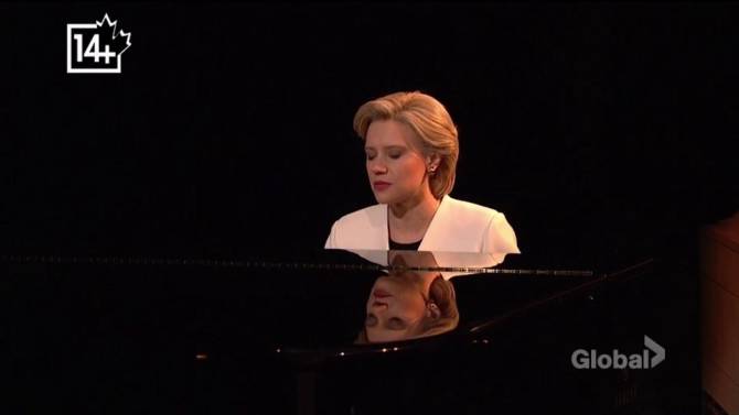 Cast member Kate McKinnon opened the NBC show in character as Hillary Clinton, sitting at a piano to perform a solo rendition of “Hallelujah,” perhaps Cohen’s best known tune.