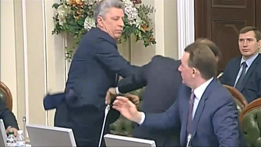 But Lyashko continued his tirade, pointing a finger at Boyko, who was seated next to him, leading to a second fistfight between the two.