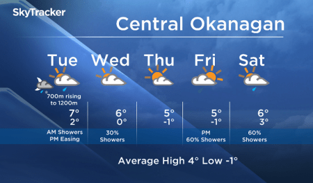 Tuesday’s daytime high range: 4 to 9C
