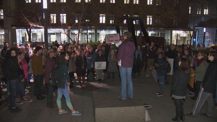 Nearly a hundred students, mostly Americans living in Montreal, held a “Love Trumps Hate” rally on the university campus.