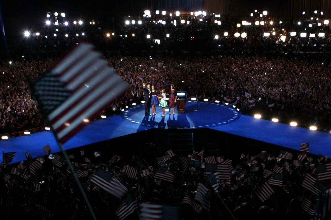 Victorious in his re-election campaign, Obama cried while giving a speech to his campaign staff and volunteers. He told the gathered young people there was no limit to what they could accomplish. The speech touched on his start as a community organizer in Chicago and reflected his faith that his young volunteers and staff would accomplish great things in the decades to come.