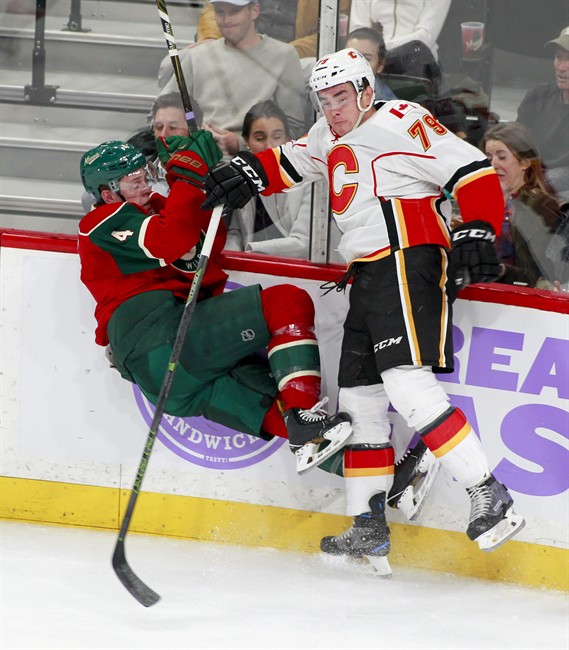 The Wild brought the NHL’s fifth-best penalty kill at 88.1 per cent into the game, but Gaudreau tallied the sixth power play goal against them this season just 6:05 into the game. Johnny Hockey made a slick move worthy of his intrepid nickname, snagging a lead pass from Mark Giordano and skating across the front of the goal mouth to get Dubnyk to go with him before tucking in a backhander for the lead.
