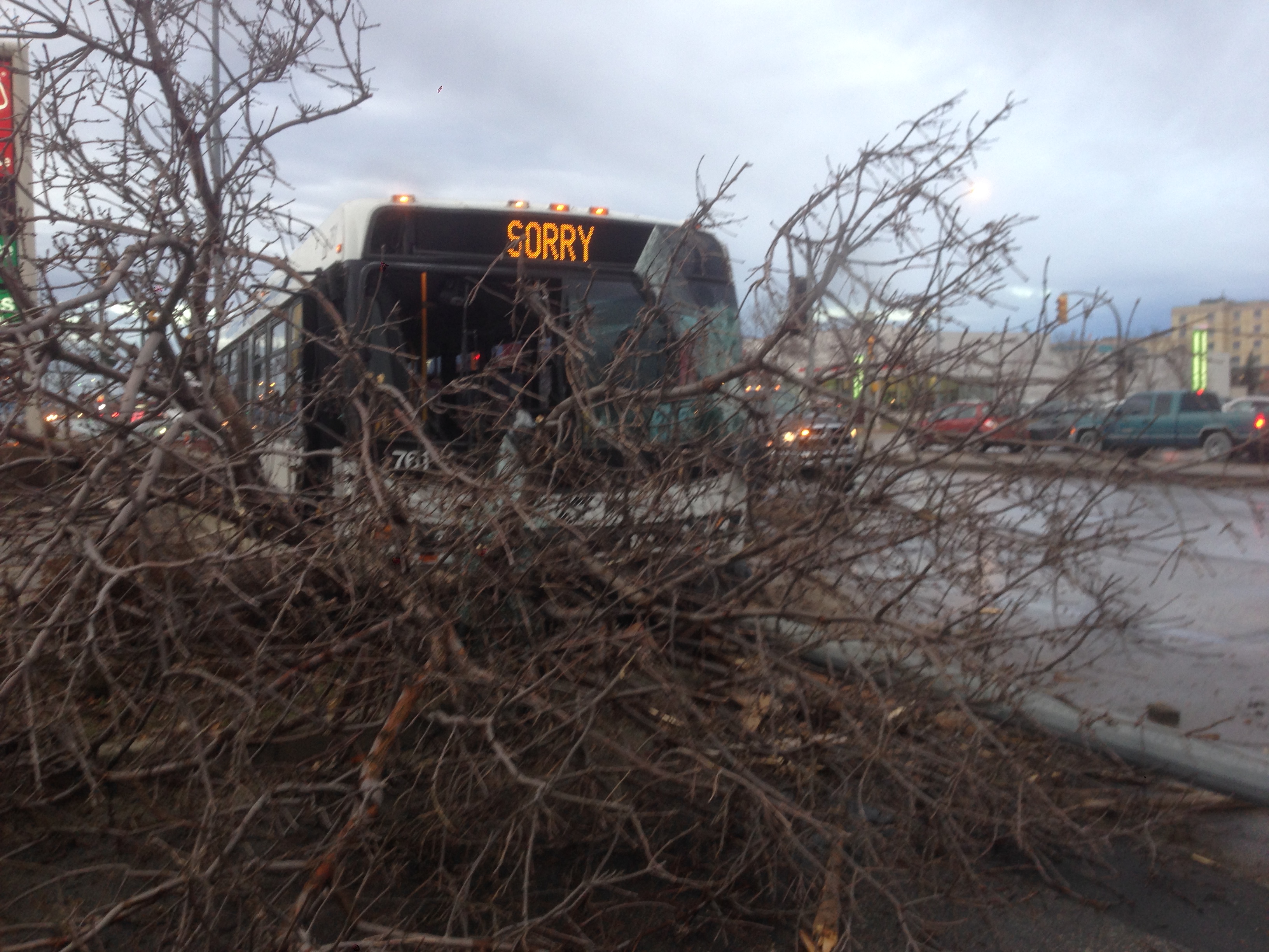 The collision happened around 6:30 a.m., and involved a city bus and vehicle. Both were badly damaged.
