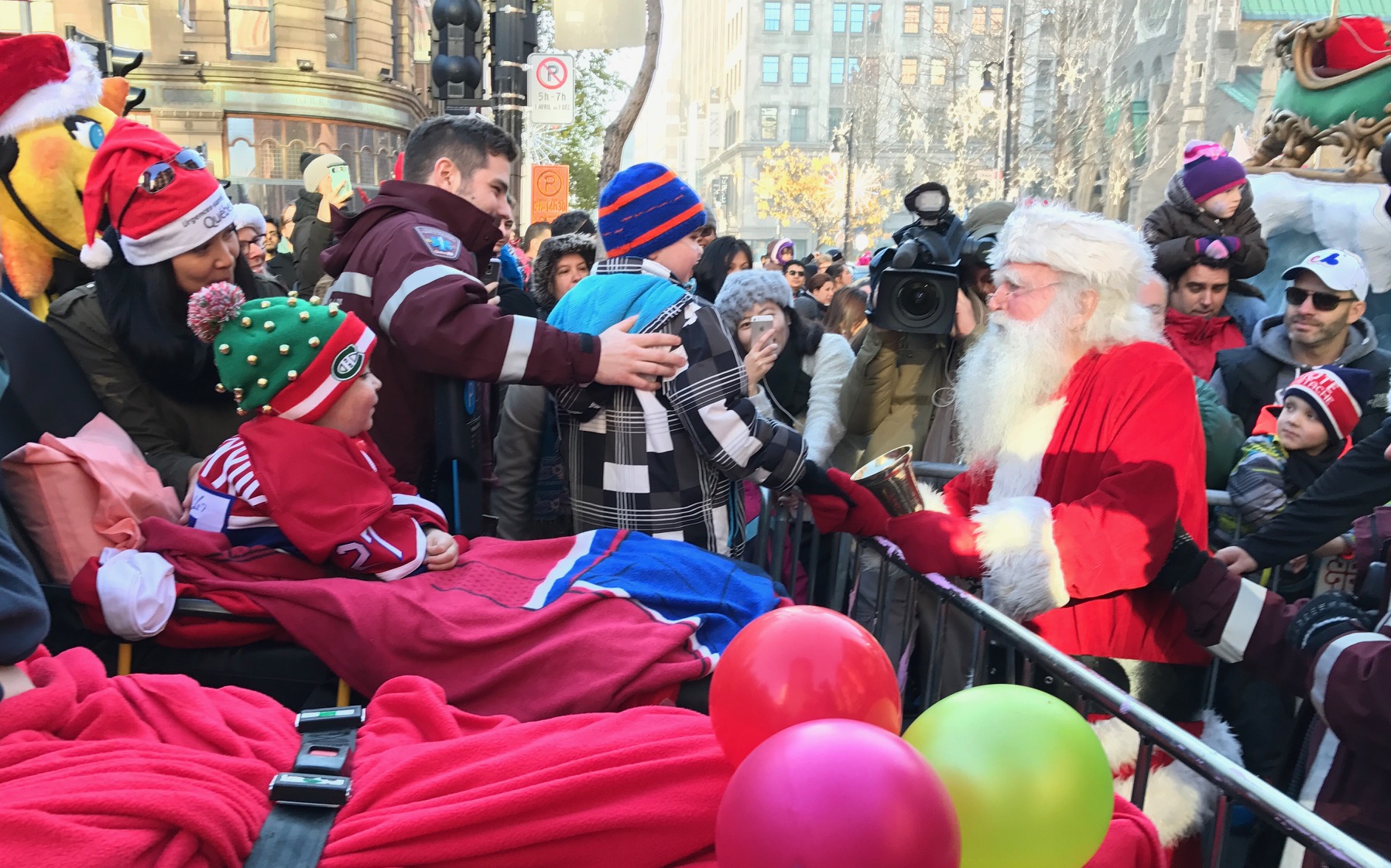 50 sick children were brought out of Montreal hospitals for the day and transported to the parade, courtesy of Urgences-Santé.