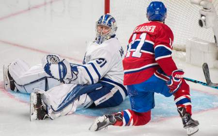 Byron was on the doorstep to jam the rebound of a Shea Weber shot past Andersen 15:45 into the opening period. It was the diminutive winger’s seventh of the season, only four shy of his career high for a season.