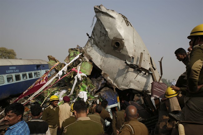Rescue workers, soldiers and members of India’s disaster management force worked through the night to pull out people trapped amid the twisted metal and overturned coaches near Pukhrayan, a village outside the industrial city of Kanpur about 400 kilometres (250 miles) southeast of New Delhi.