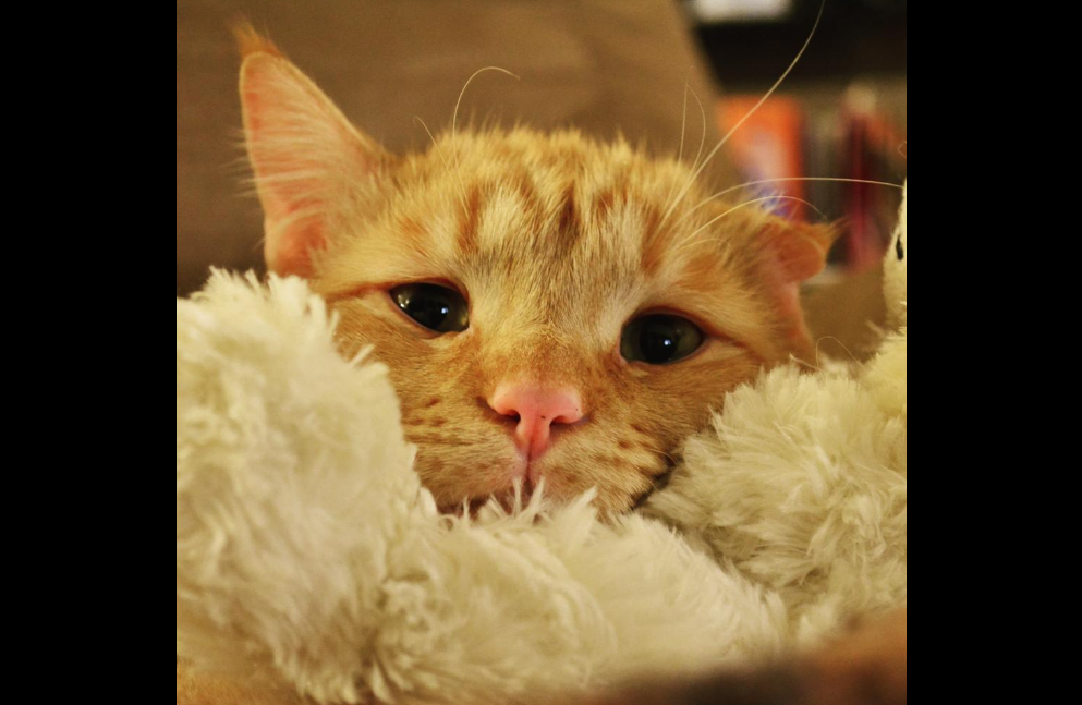 Dubbed the ‘saddest cat on the Internet’ due to his worried look and down-turned eyes, BenBen was just one day from being euthanized when he was rescued back in April.