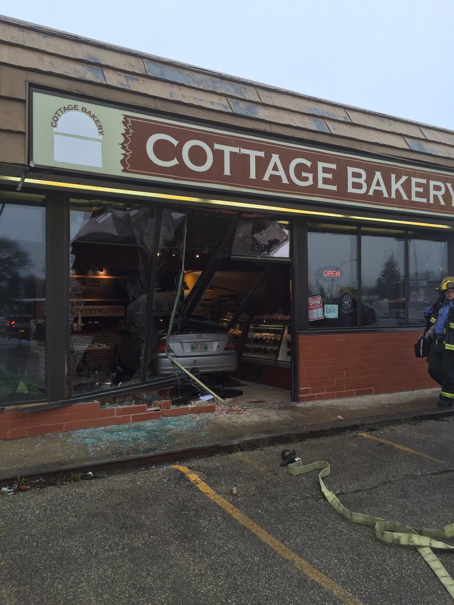 It’s still not clear exactly what led to the vehicle crashing through the front of The Cottage Bakery at 1382 Pembina Highway. Esfahani is just grateful no one was badly hurt.