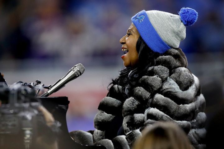 Aretha Franklin extended the length of the Star-Spangled Banner at Thursday’s NFL game between the Minnesota Vikings and Detroit Lions.
