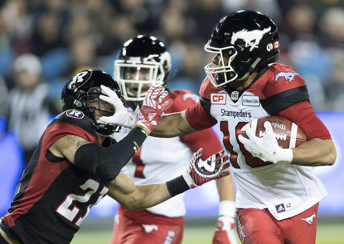 TORONTO – The Calgary Stampeders lost leading receiver Marquay McDaniel to a shoulder injury late in the first quarter of Sunday’s Grey Cup.