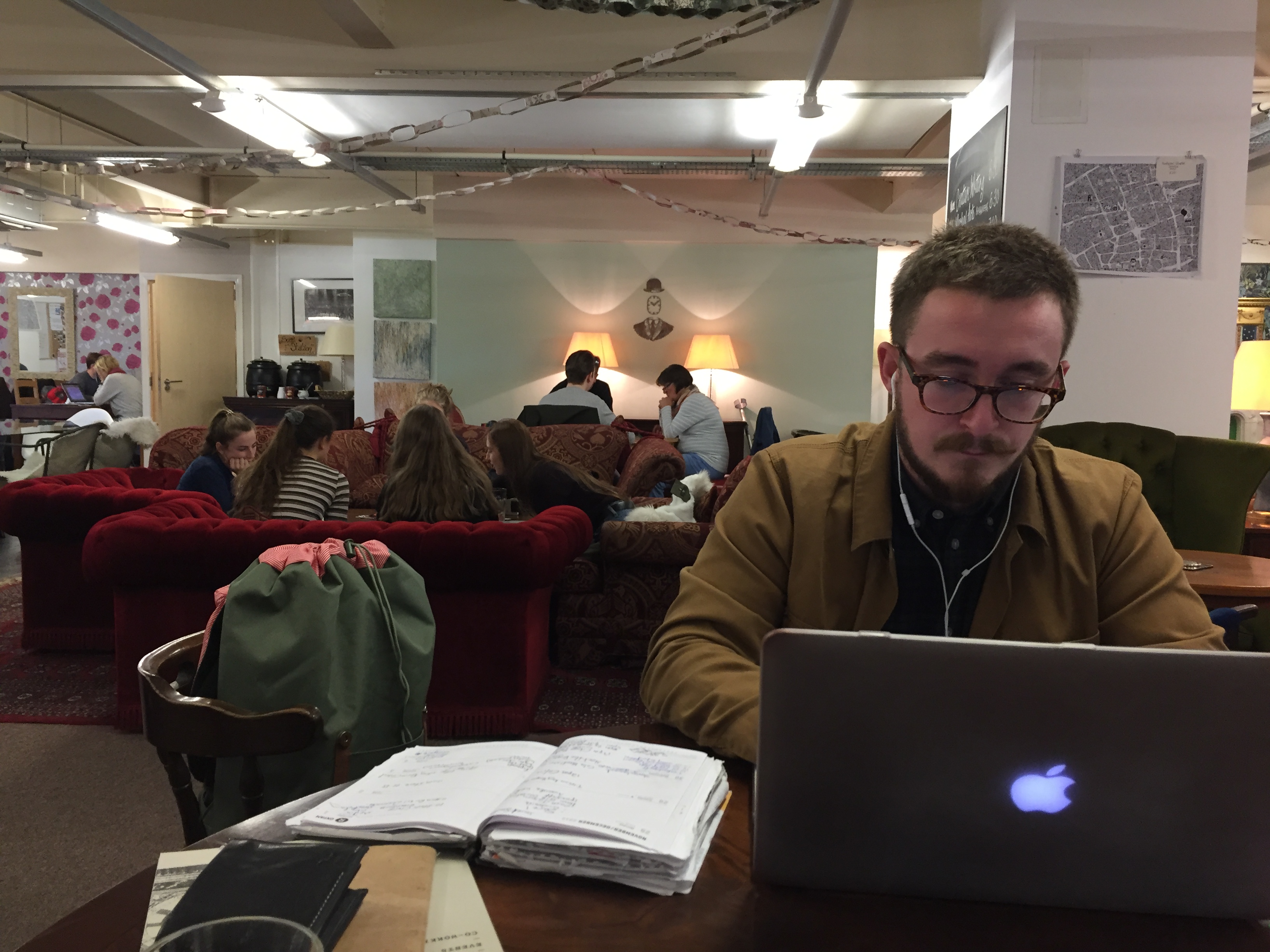 So he tried working in traditional cafes; “In a coffee shop you tend to get that vibe where the staff, after half an hour, are glaring at you, waiting for you to buy something else. Whereas it’s a lot more relaxed here. And the wifi is better.”