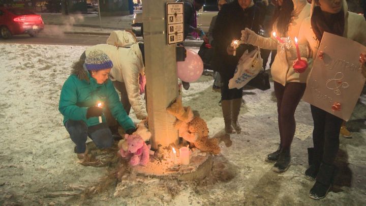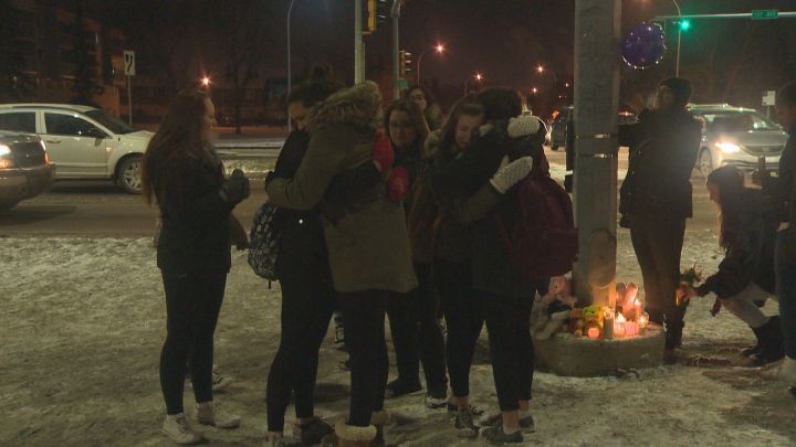 Family and friends of 13-year-old Mariama Sillah gathered in the Clareview neighbourhood to honour the young girl, who died after she was struck by a bus while walking in a marked crosswalk in the area of 137 Avenue and 40 Street last Saturday evening.