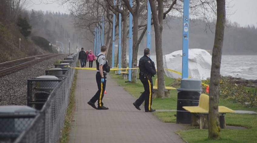 A male’s body was found washed up on the beach near White Rock Pier on Saturday morning.
