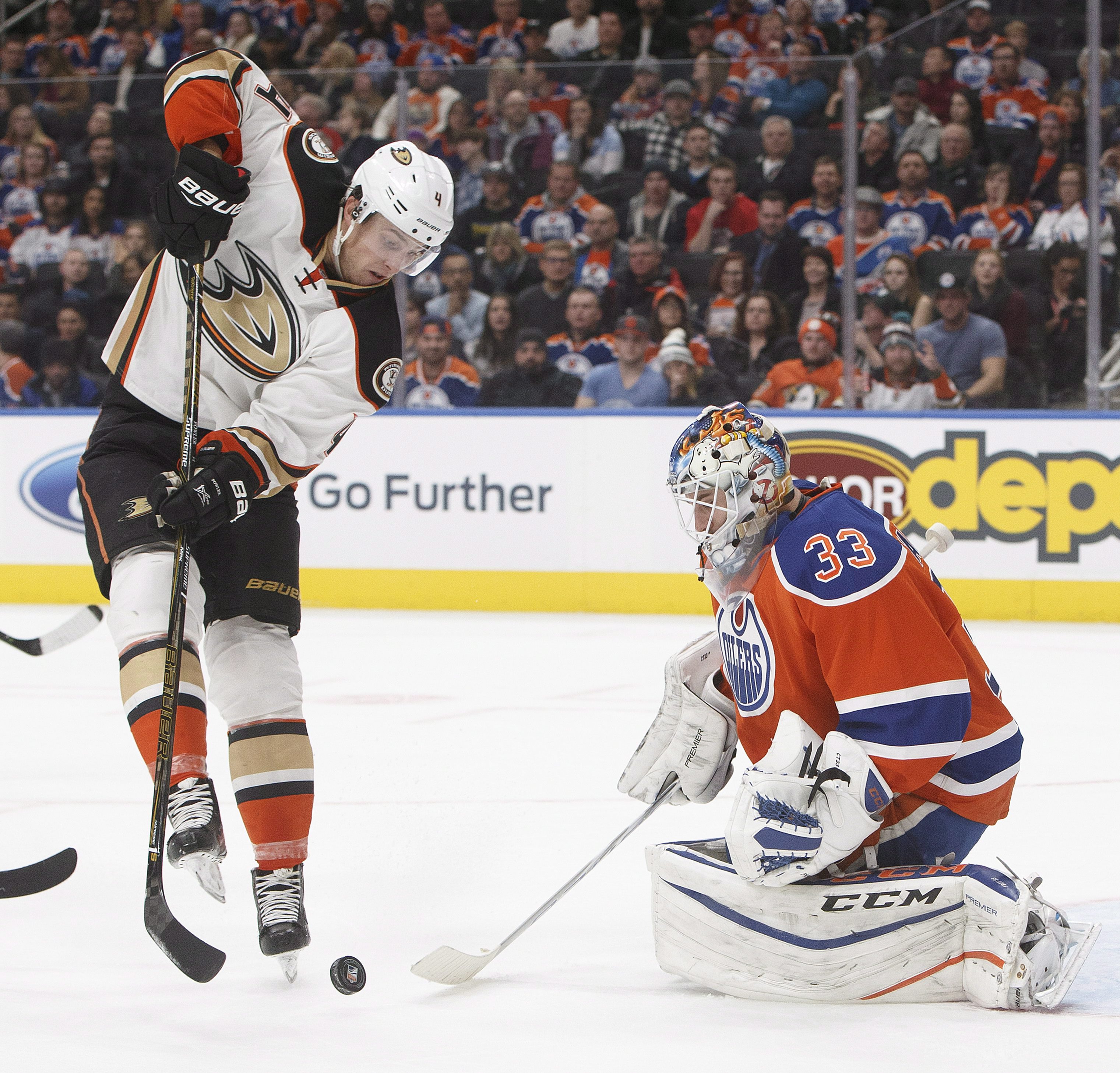It was pretty even through the scoreless first period, with Anaheim putting eight shots on Edmonton starter Cam Talbot and the Oilers getting seven on Gibson.