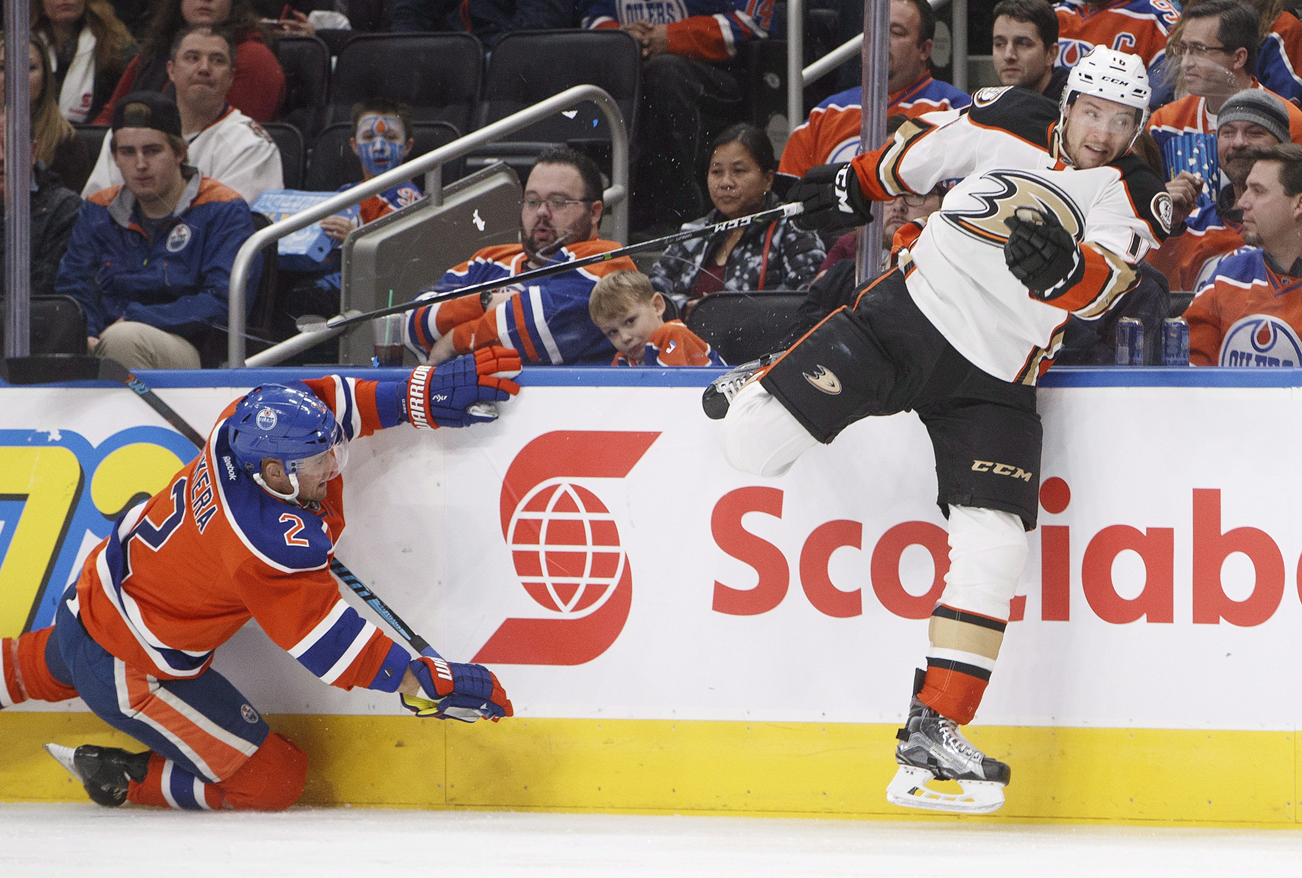Notes: It was the second of five meetings between the two teams this season, with the Ducks winning the first game in Anaheim 4-1 in mid-November… Anaheim came into the game with a 8-1-1 record in their last 10 games against Edmonton… Oilers defenceman Mark Fayne played just his second game of the season, coming in to replace injured blueliner Darnell Nurse, who is out long term with a lower-body injury.