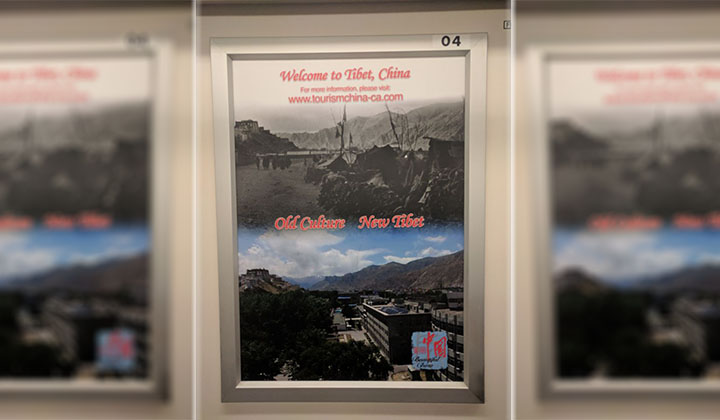 “The ad in question is a propaganda ad sponsored by the Chinese government through the China National Tourist Office that reads ‘Old Culture’ and ‘New Tibet,'” Sonam Chokey, national director for Students for a Free Tibet, wrote in the letter.