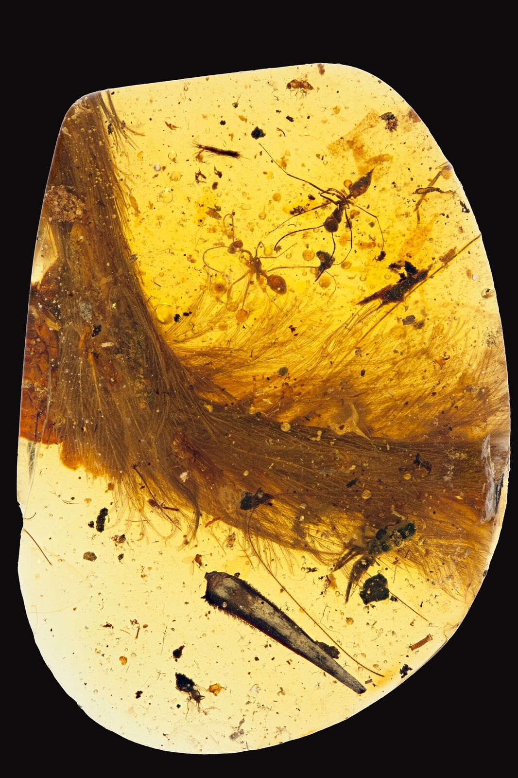 “But the tree resin hardened around the tail feathers before they were buried and that has preserved them in perfect three-dimensional form.”