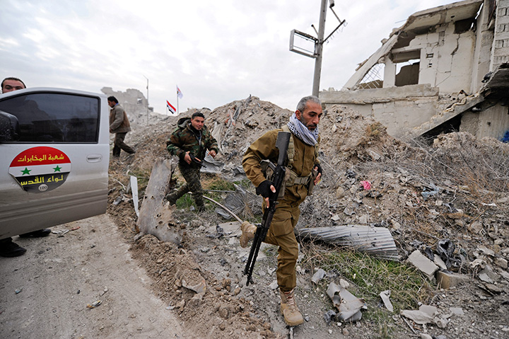 The Syrian army is backed by Russian war planes and Lebanese and Iraqi Shi’ite militias supported by Iran. Its advances on Monday were aided by a militia of Palestinian refugees in Syria, the Liwa al-Quds or Jerusalem Brigade, the general said.