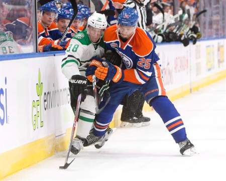 He has three goals and two assists in 25 games for the Oilers this season, but his game has really improved in a number of areas in his second year in the NHL.
