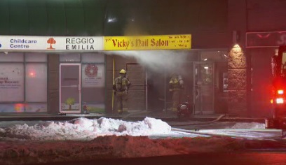 They found flames and smoke coming from a building that houses a nail salon.