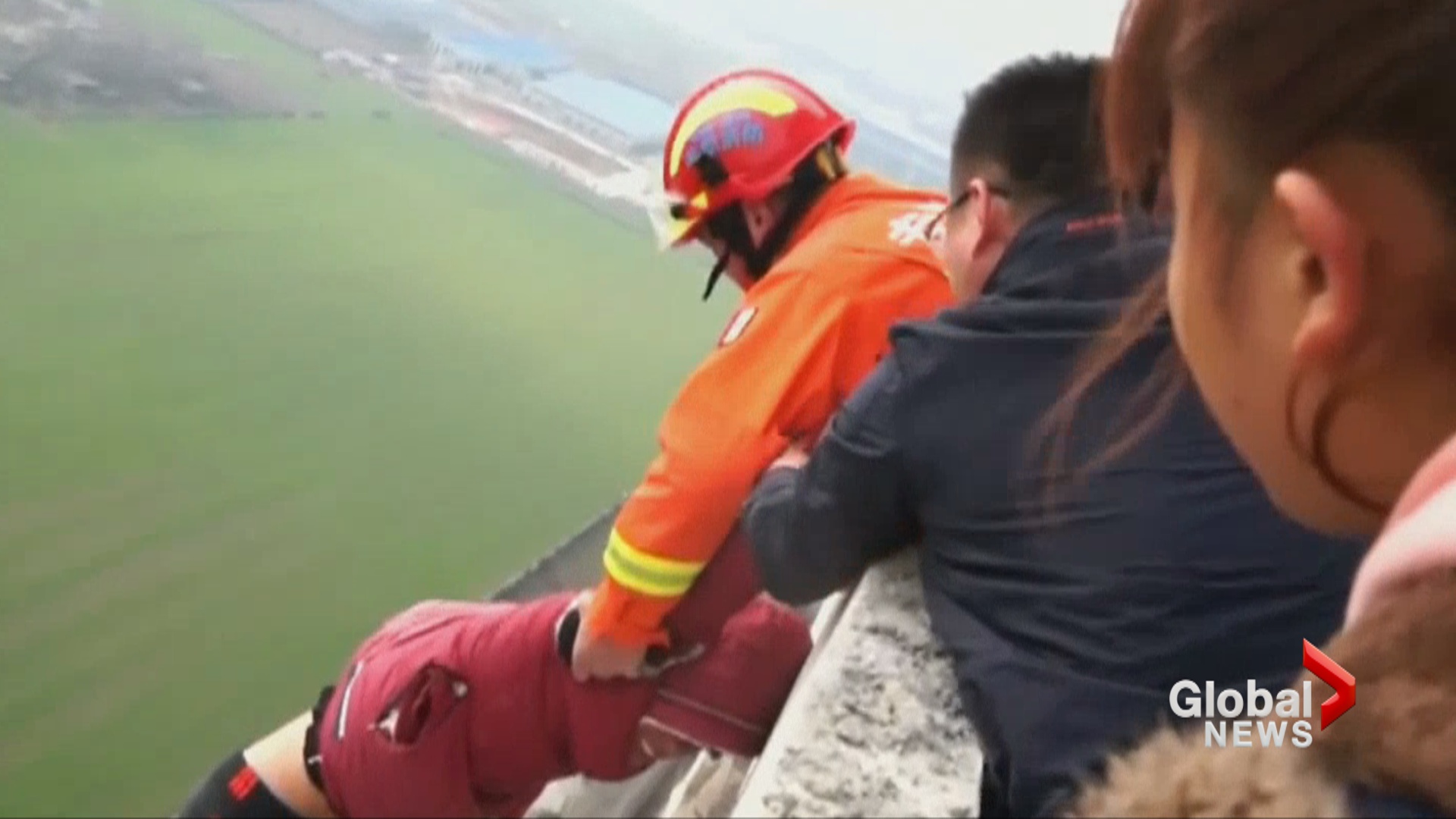 Newly released video shows the moment firefighters in China rescued a man threatening to jump from a 30-storey building in the eastern Chinese city of Suzhou.
