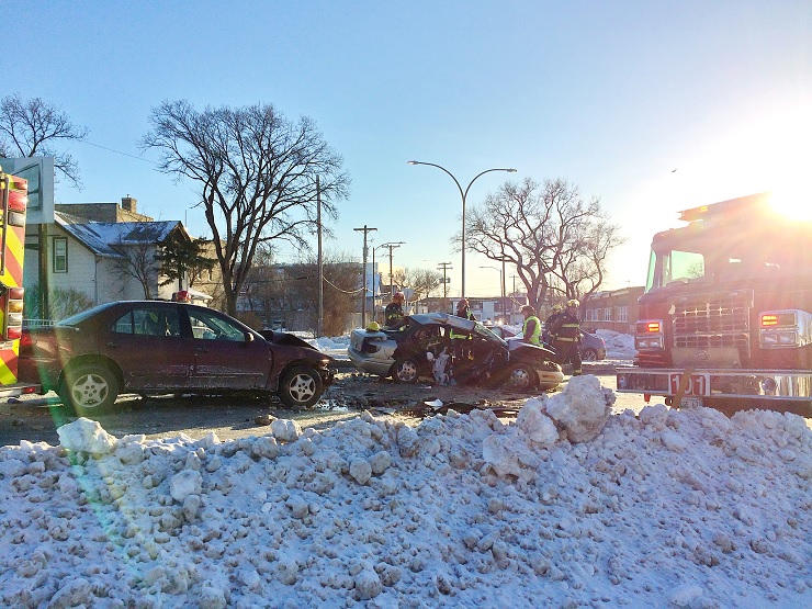 Witnesses on scene told Global News the woman was on the ground receiving CPR and that one of the cars briefly caught fire after the crash.