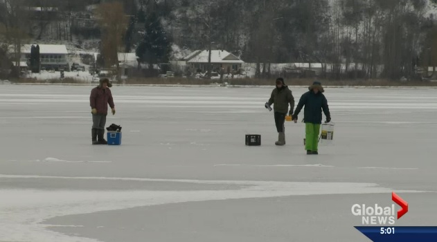 A Kelowna man is warning others to play it safe when venturing out onto ice-covered lakes.