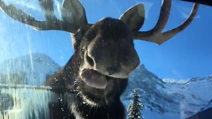 “He left moose kisses all over the vehicle…A pretty Canadian and rare experience!”