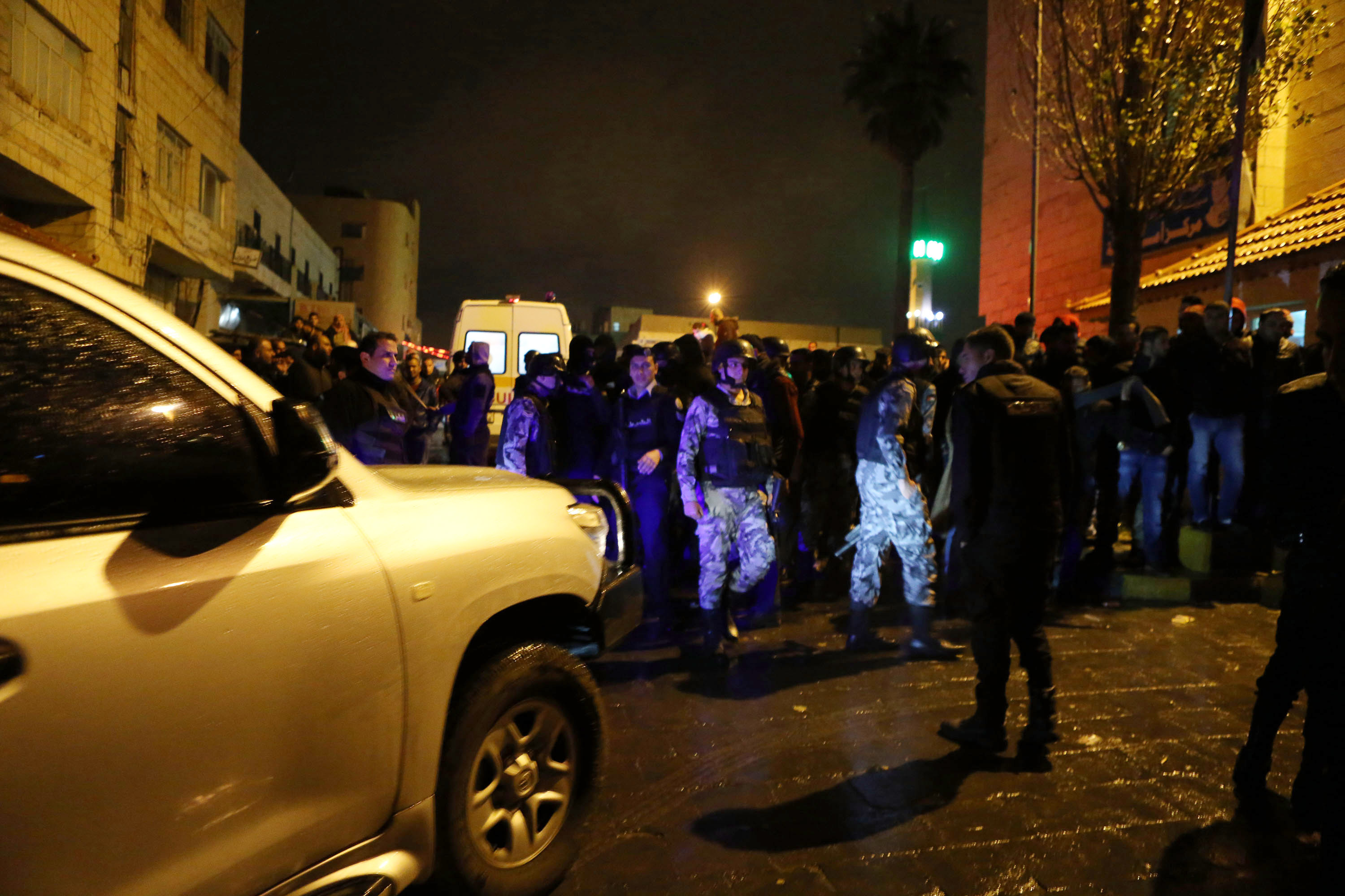 Police said the gunmen had arrived from the desert town of Qatraneh nearly 30 km northeast of Karak city, a desert outpost known for smuggling, where many tribal residents are heavily armed.