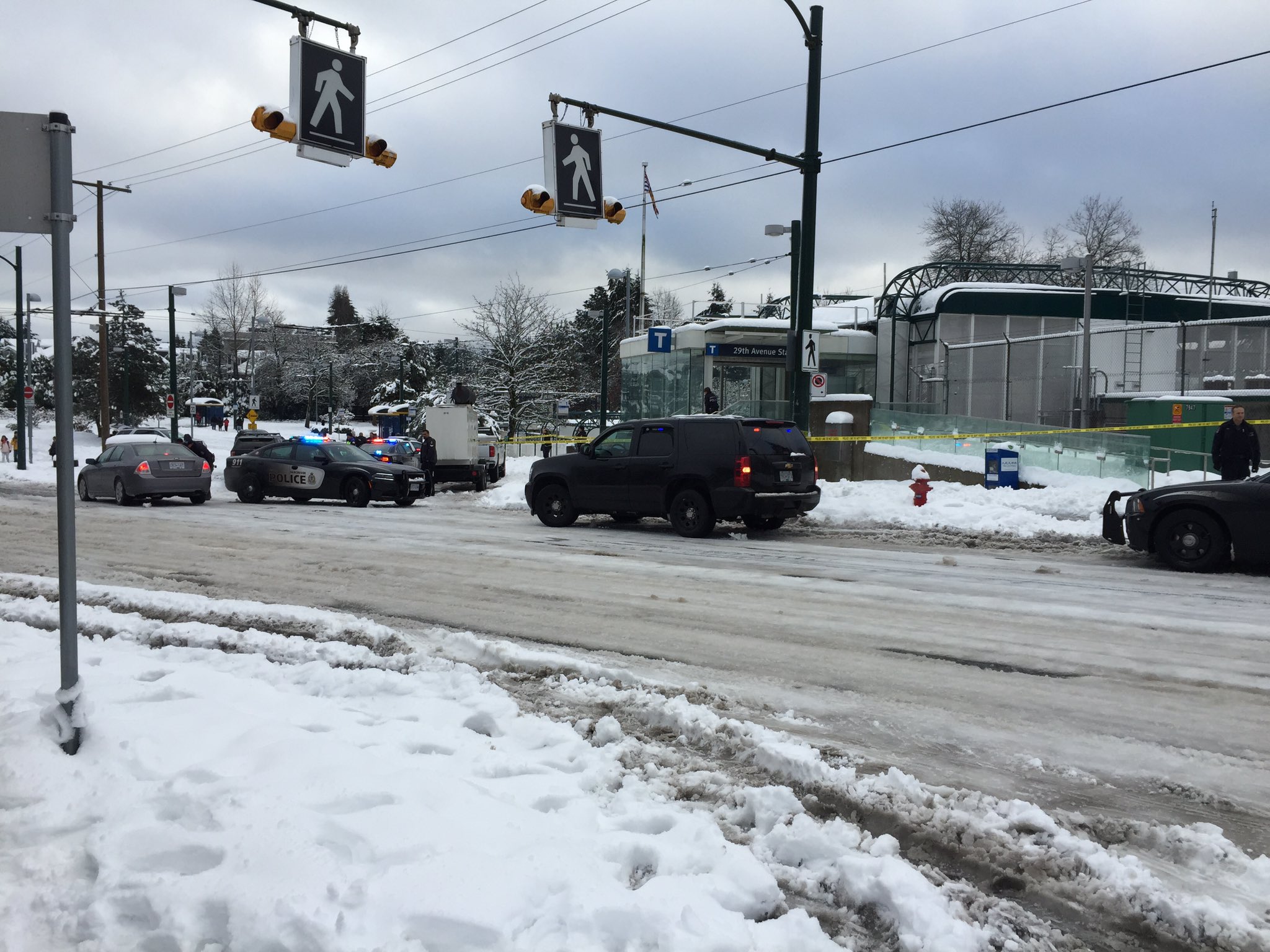 The closure added to huge delays on the SkyTrain network today, which was already seeing huge delays due to the snow and rain.
