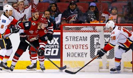 The teams combined to serve 36 penalty minutes. … Coyotes F Max Domi missed his sixth straight game due to a hand injury. … D Kevin Connauton and D Anthony DeAngelo were scratched, as was F Brendan Perlini. Perlini had played the past eight games and DeAngelo the previous five. … D Michael Stone played his 300th career NHL game. … F Lance Bouma, C Freddie Hamilton and D Tyler Wotherspoon were scratched for the Flames. Wotherspoon was called up from Stockton of the AHL earlier Monday. … F Garnet Hathaway returned to action after sitting out the past two games.