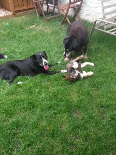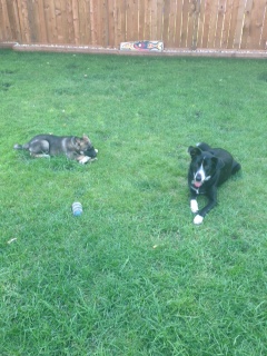 When the two first brought Asha home, Gauthier said the dog had to be careful and playtime was limited, as she was much smaller then. But months later Asha is now happy and loving her new home. She even has two “sibling” dogs, who play with her constantly, Gauthier said.
