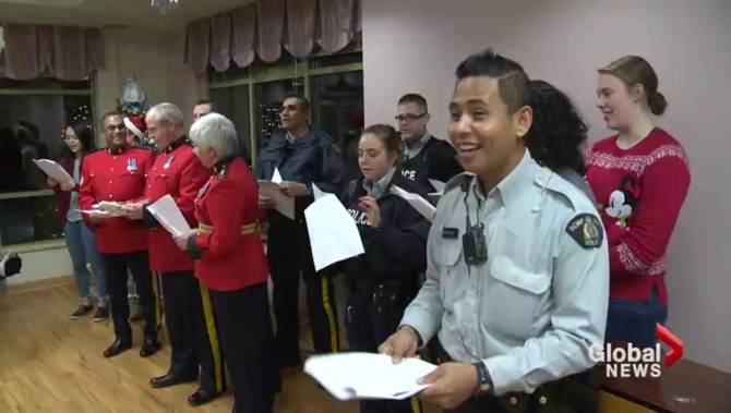 This year, the three-year Mountie is leading a team of more than a dozen caroling cops, who are lending their voices to spread Christmas cheer at local seniors’ homes.