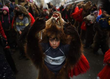 In parts of Romania, locals celebrate the new year by parading through the streets in bearskins to scare away the evil spirits of the past year. A century ago, they used to have real bears.