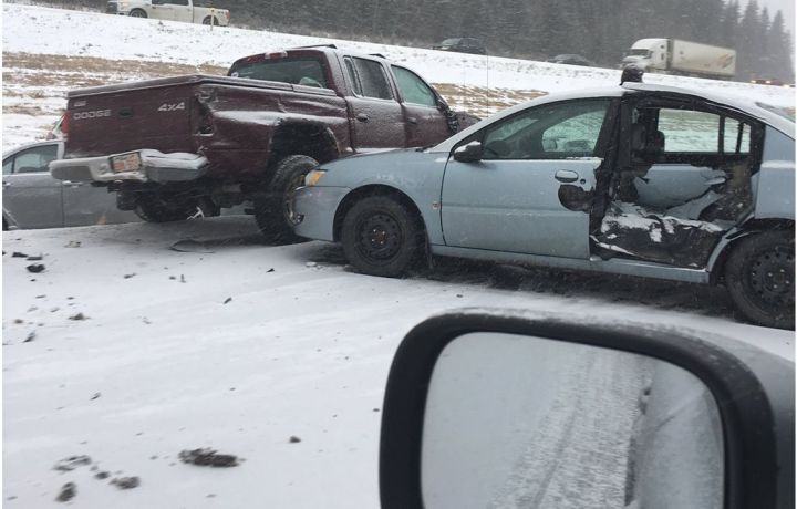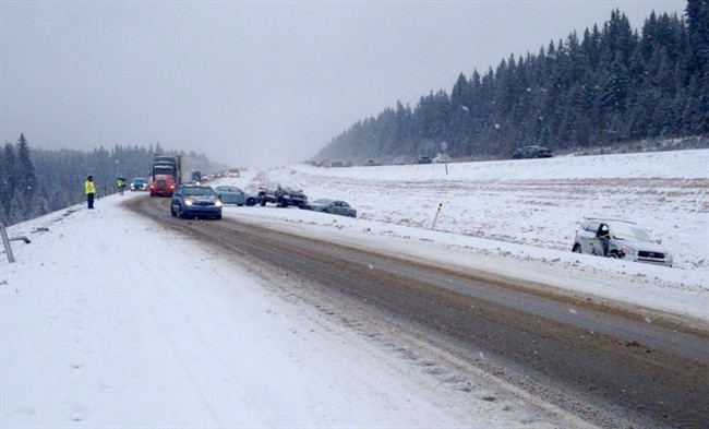 In a news release Friday, RCMP said they were called to a scene on Highway 1 near Scott Lake Hill around 12:40 p.m., after 30 to 40 vehicles went into a ditch.