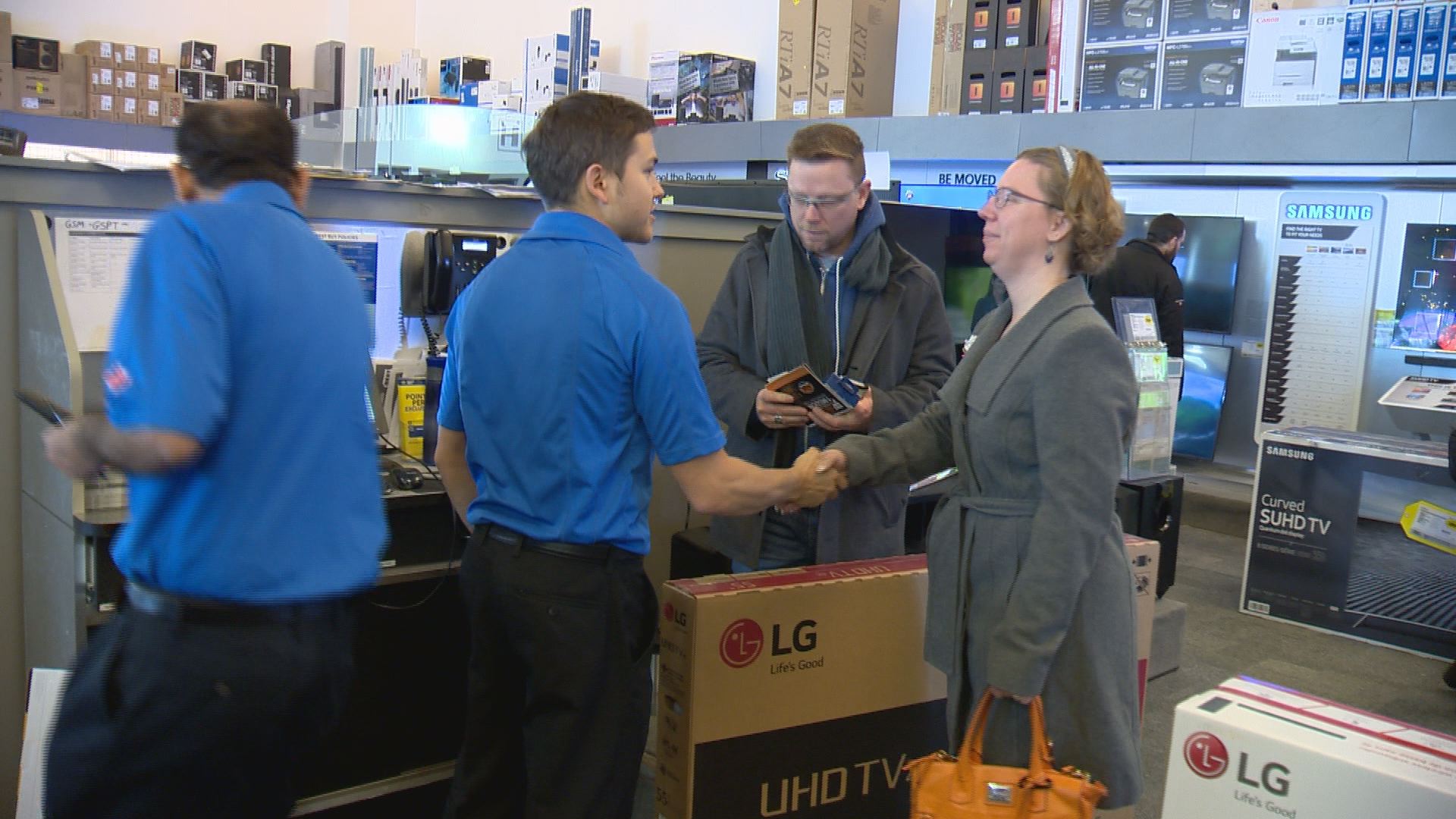 Trevor and Nadine Bemis were two first-time Boxing Day shoppers who purchased a new television at Best Buy. They said the savings likely amounted to a few hundred dollars.