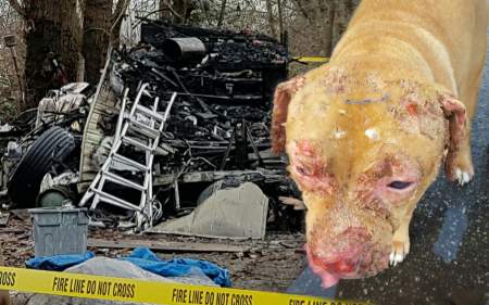 A severely burned pit bull cross named Isabelle is now fighting for her life at Richmond Animal Hospital after surviving a fire just before Christmas.