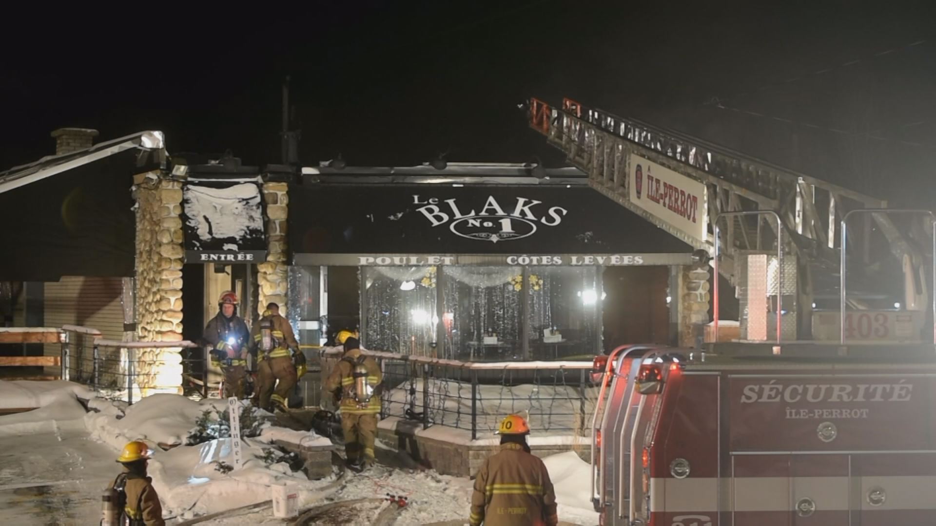 Firefighters battled a blaze Sunday night at Le Blaks No 1 restaurant in Île-Perrot, just west of the island of Montreal.