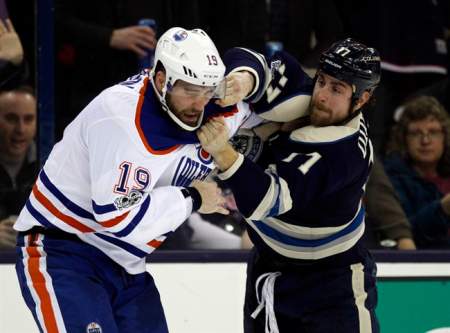 Oscar Klefbom evened it 5:39 into the second period with a shot from the slot on an Oilers rush. Shortly afterward, the Blue Jackets’ Brandon Dubinsky and the Oilers’ Patrick Maroon — who got an assist on Klefbom’s goal — slugged each other briefly and went to the box for fighting after Maroon threw a high elbow.