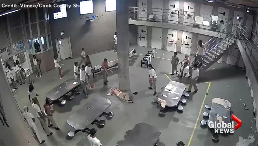 The Cook County Sheriff’s Office has released dramatic footage of a brawl which sent five inmates to hospital last Friday.