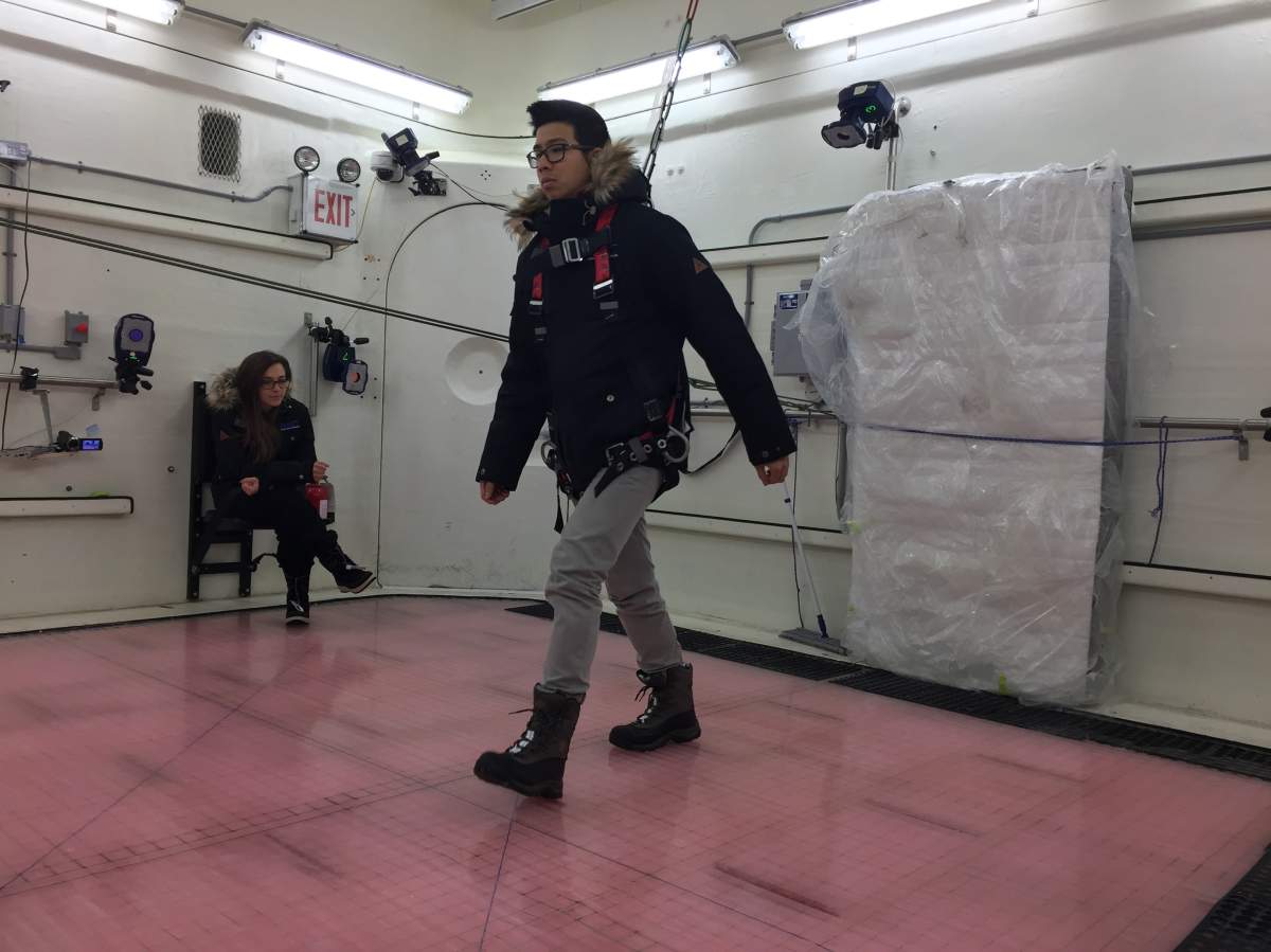 So Fernie helped created the WinterLab. He describes it as “a gigantic icebox” where conditions can be adjusted to simulate Canadian winter walking conditions. The slope of the ground can also be altered to better test a shoe’s grip capabilities.