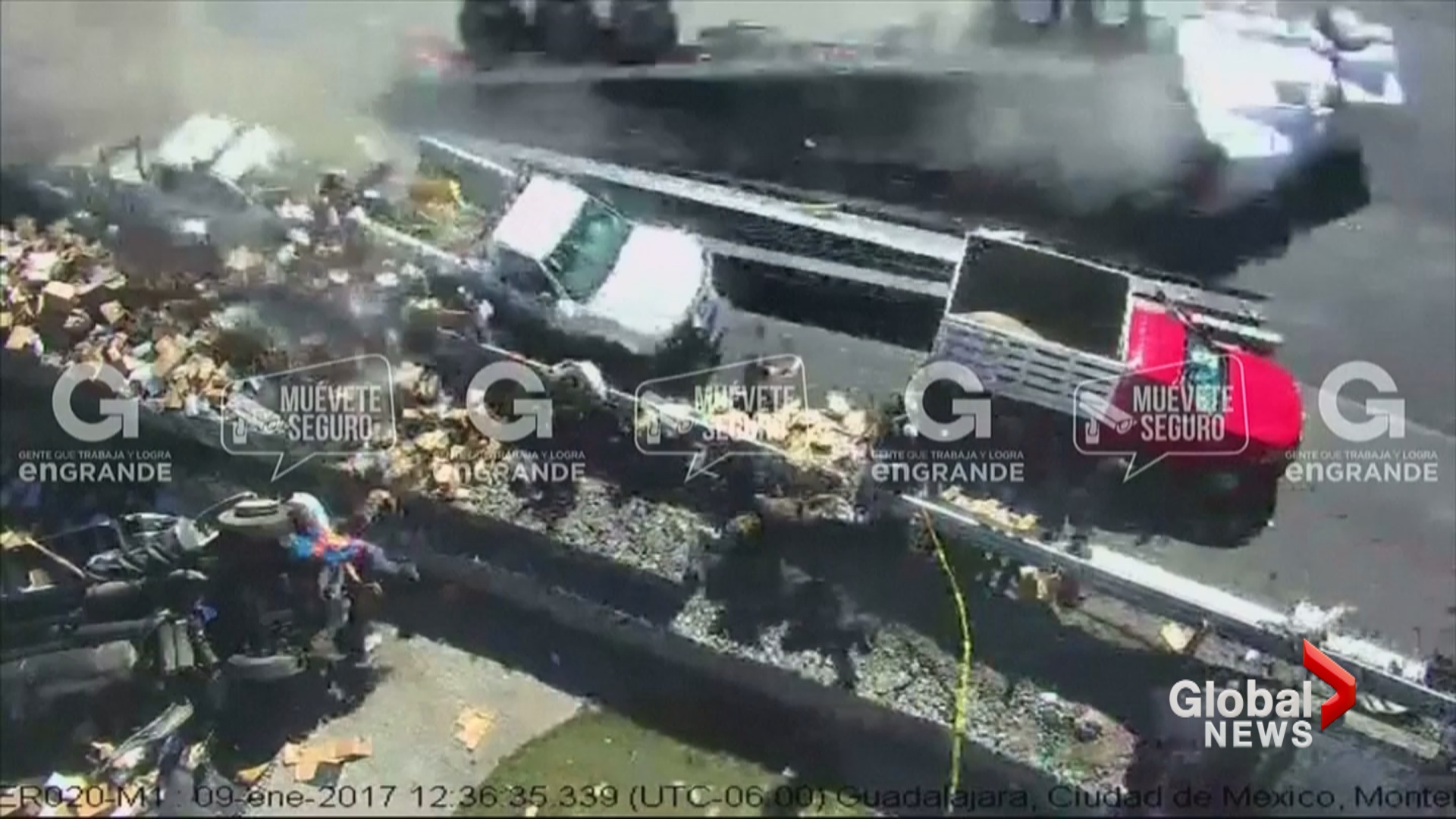 A dramatic road accident, which left one person dead and 13 injured — including five reporters — was caught by CCTV along the Mexico-Toluca highway near the municipality of Lerma on the outskirts of Mexico City.