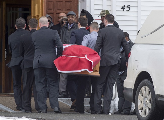 The funeral service inside the big, old church by the harbour started with the arrival of two caskets – one draped in the Canadian flag and carrying the remains of former soldier Lionel Desmond, the other his mother Brenda.