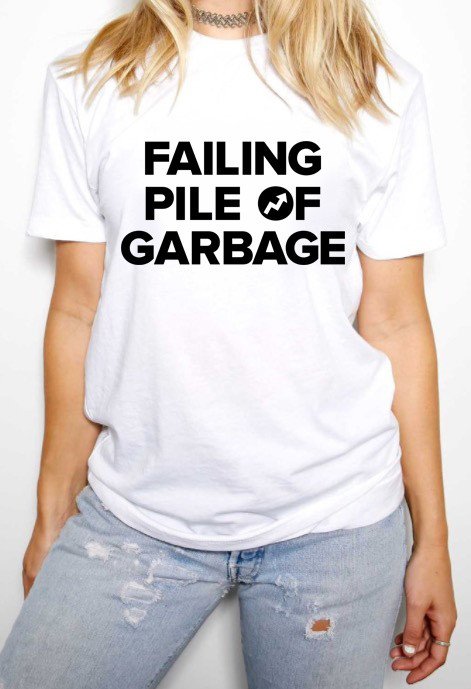 The BuzzFeed Shop advertised the limited edition “failing pile of garbage T-shirt” on sale for US$30 until midnight ET on Thursday morning.
