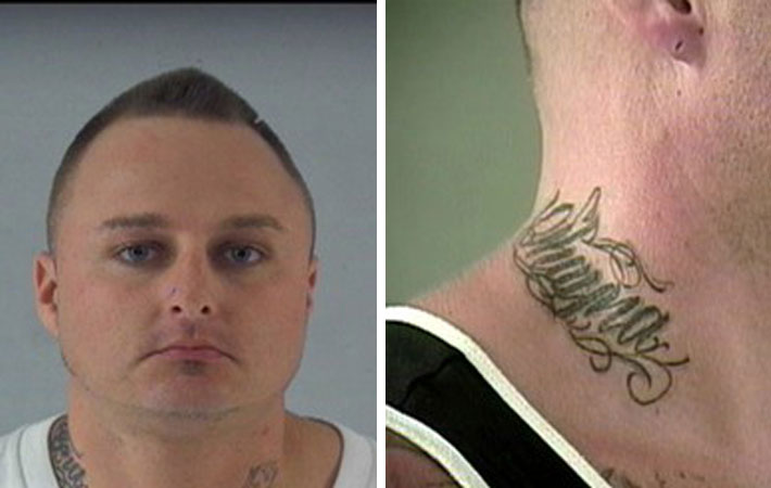 He has a neck tattoo with cursive writing on the right side of his neck and was last seen wearing all dark clothing, grey Air Jordan shoes and a black and white scarf with faces on it.