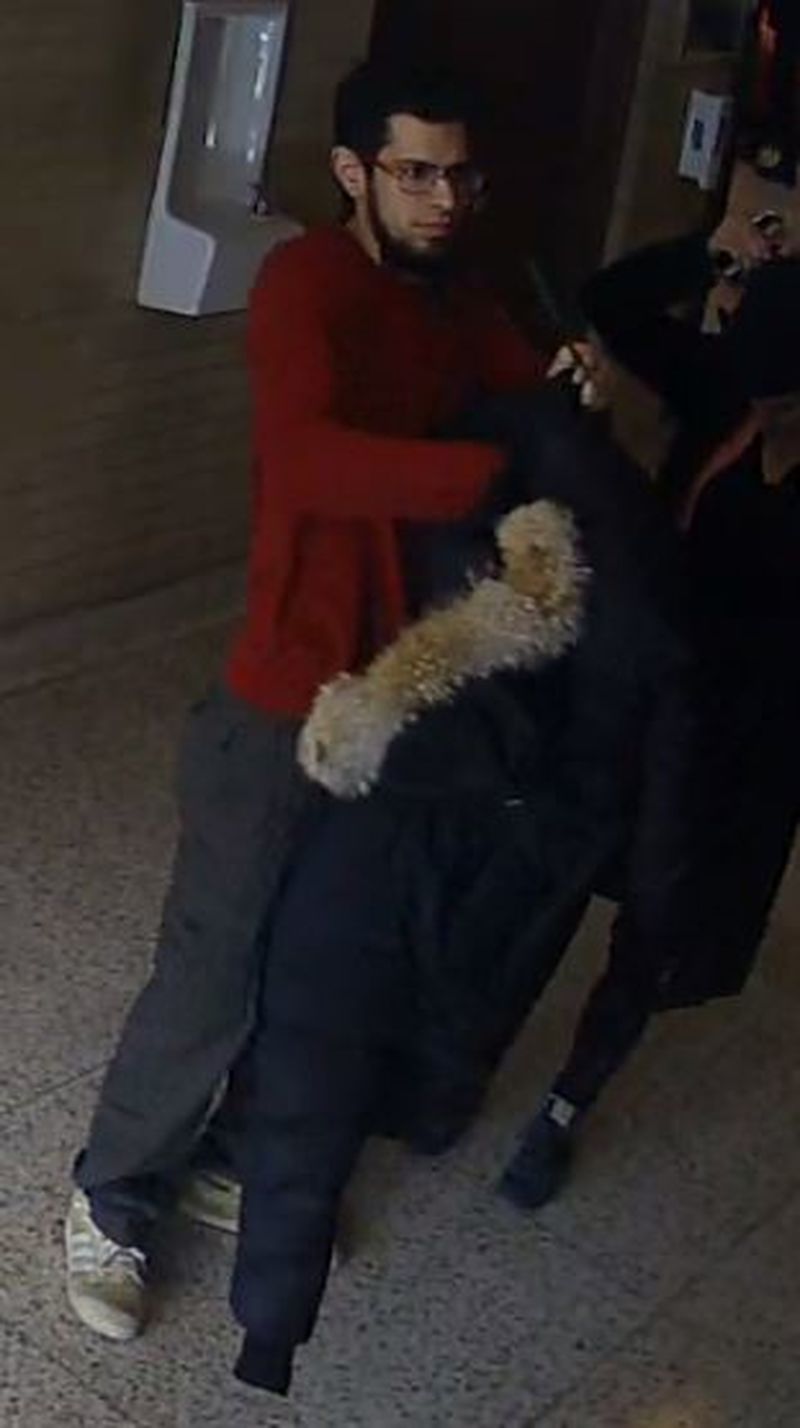 The man is described as 20-25 years old, approximately 5’7″ to 5’10” and was seen wearing a dark coat, red sweat, grey pants and beige shoes.
