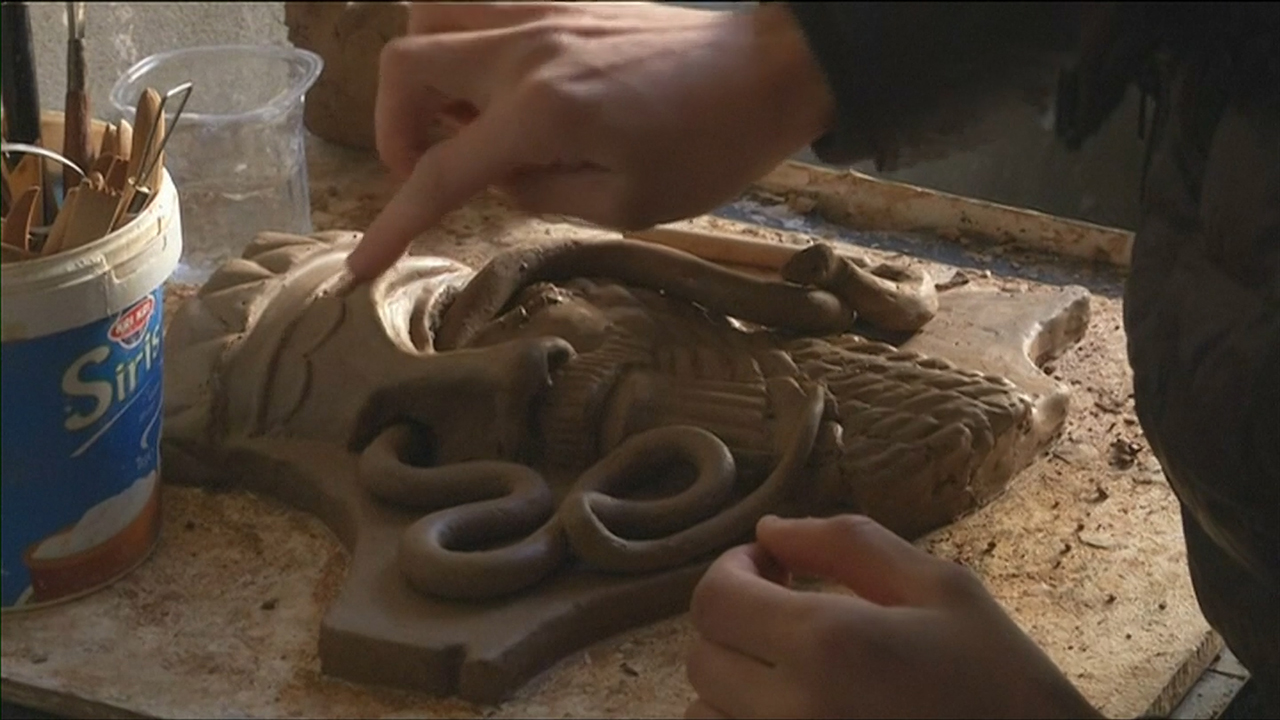 ERBIL, Iraq – As Iraqi forces fight to retake the northern city of Mosul from the Islamic State, an artist in nearby Erbil is chiseling at clay in a tiny, unheated studio to recreate historic Assyrian monuments destroyed by the group.