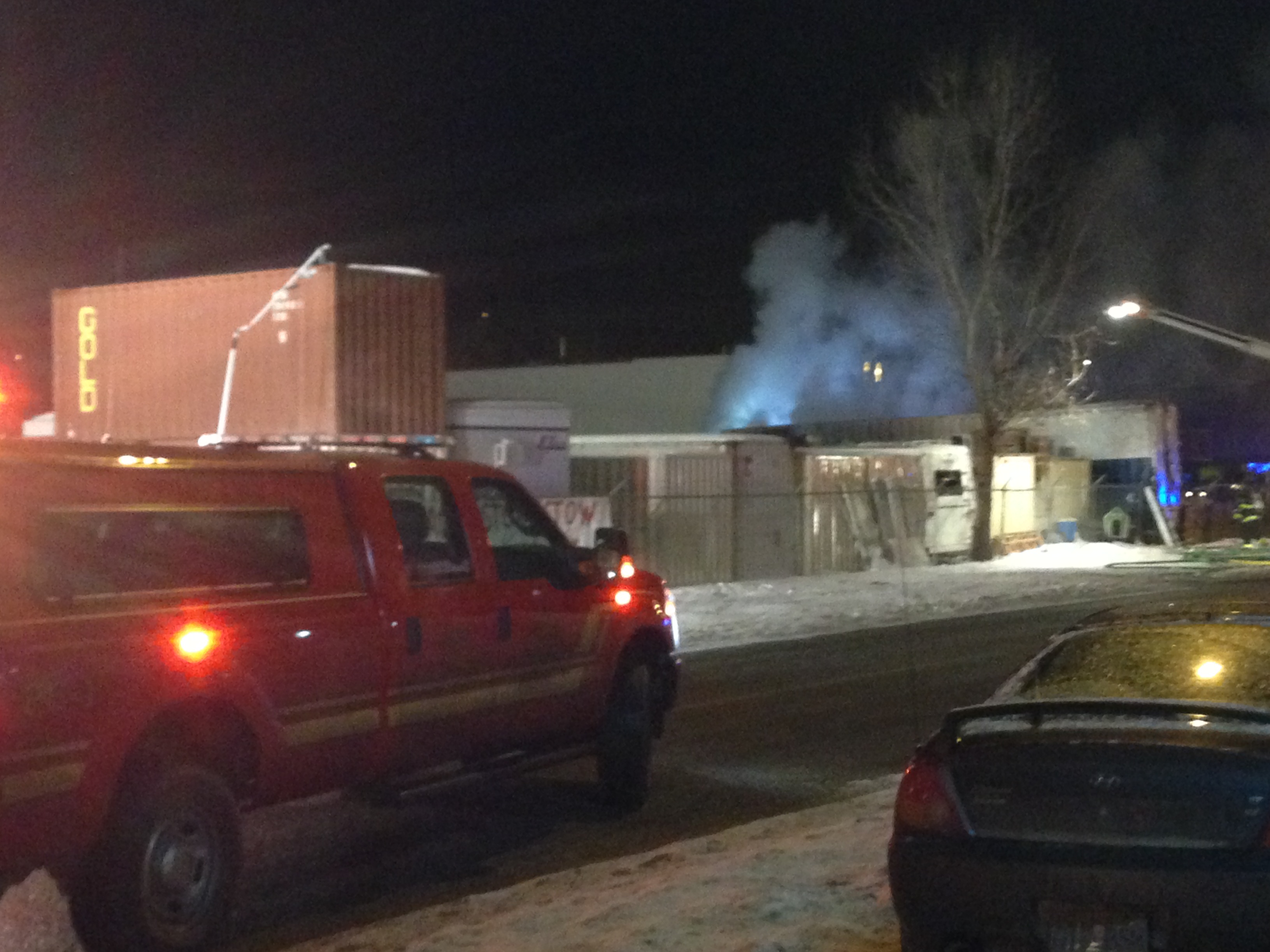 The Kelowna Fire Department was called to 140 Adams Road Tuesday around 6:30 p.m. for flames coming out of a two closed steel storage box.
