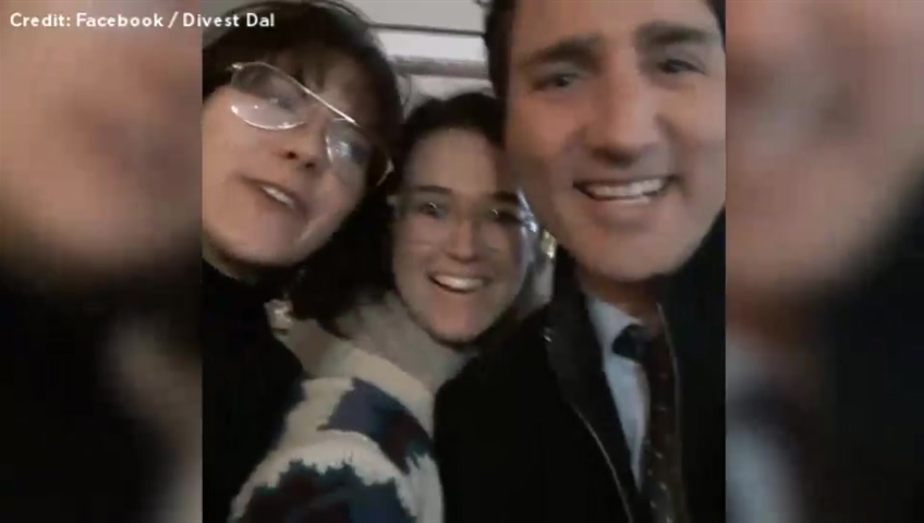 Two Dalhousie University students made the most of a selfie with Prime Minister Justin Trudeau on Monday, by posing questions on indigenous rights rather than just posing with their pearly whites.