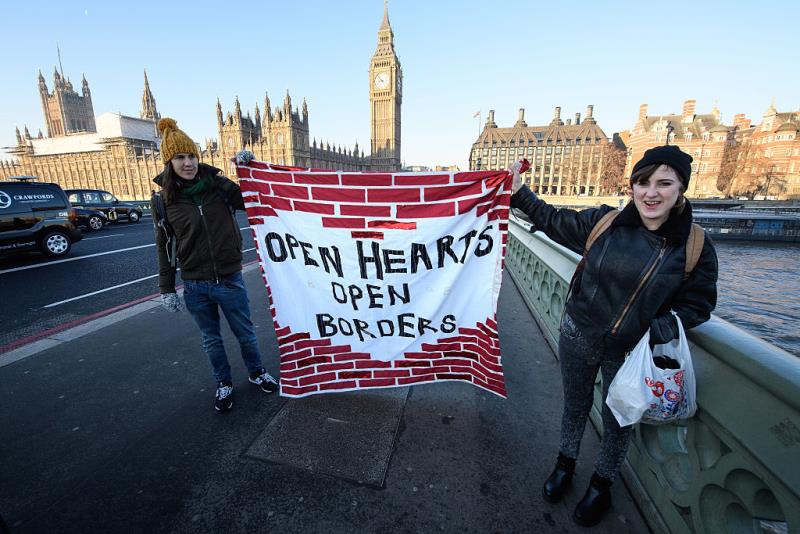 The protest in London was organized by the campaign group also called Bridges not Walls, in reference to Trump’s pledge to build a wall on the Mexican border.